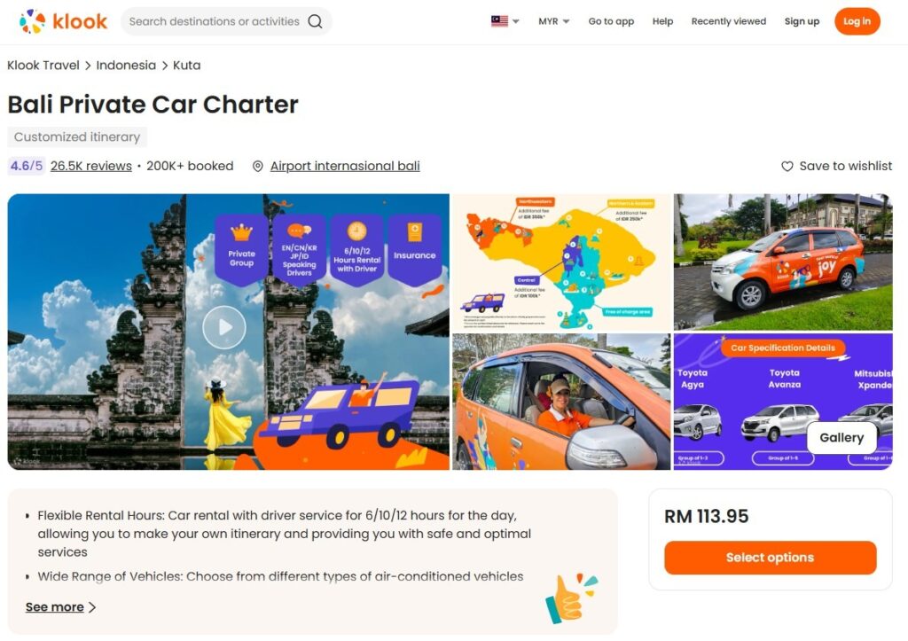 Klook has revolutionized travel bookings across Asia, and their car rental service in Bali brings the same user-friendly platform and competitive pricing. Popular among younger travelers and those who prefer booking everything digitally, Klook partners with verified local rental operators to offer a wide range of vehicles.